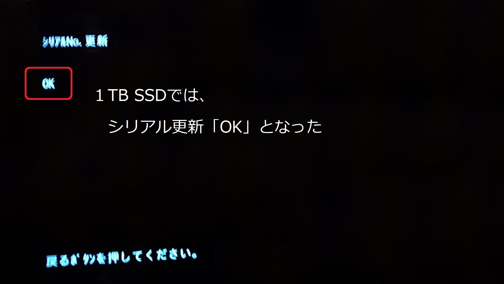 ・2TBHDDのフォーマットはできたものの、シリアル更新がNGとなって認識しませんでした。