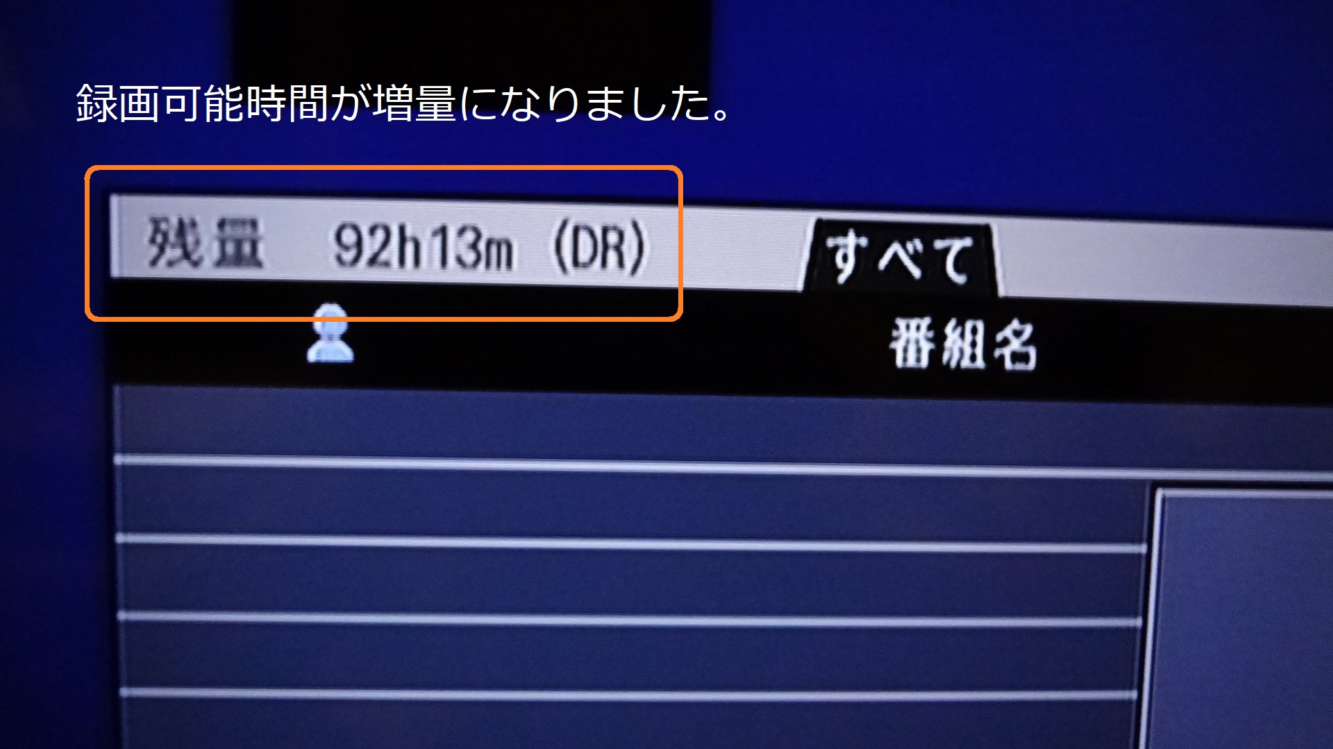 ハードディスクの増量をするためには、もう1台の東芝レコーダーD-B1005と同じようにメンテンスモードで登録すれば、簡単に登録でき増量が出来る様です。このような情報を検索していると、