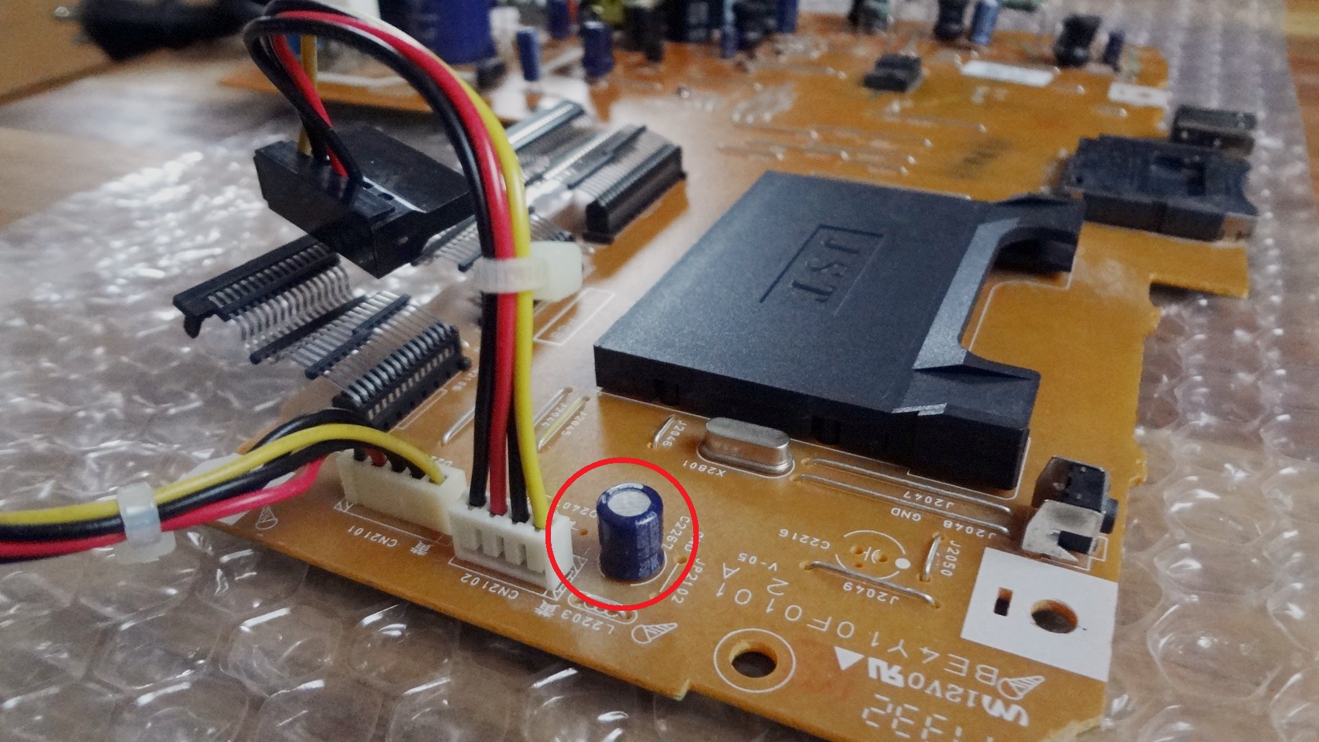 電解コンデンサは生産国があちらの国が多い上に、レコーダー年数でのコンデンサの寿命を考えると怪しい年数です。