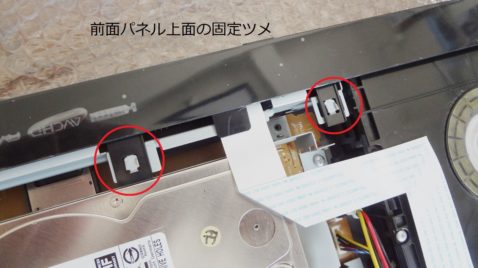 これは、ハードディスクを外すには前面パネルを外さないと無理です。(Panasonic DIGAも同じでした。)