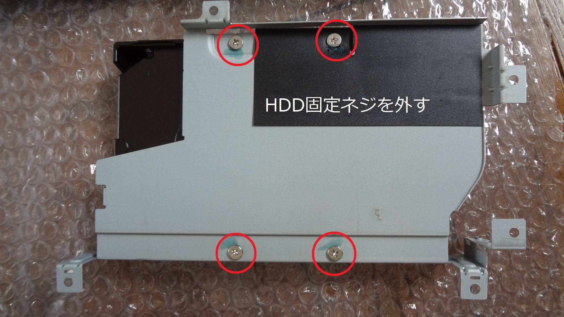 ③HDDから取付台を裏返し皿ネジ4本外しHDDを分離