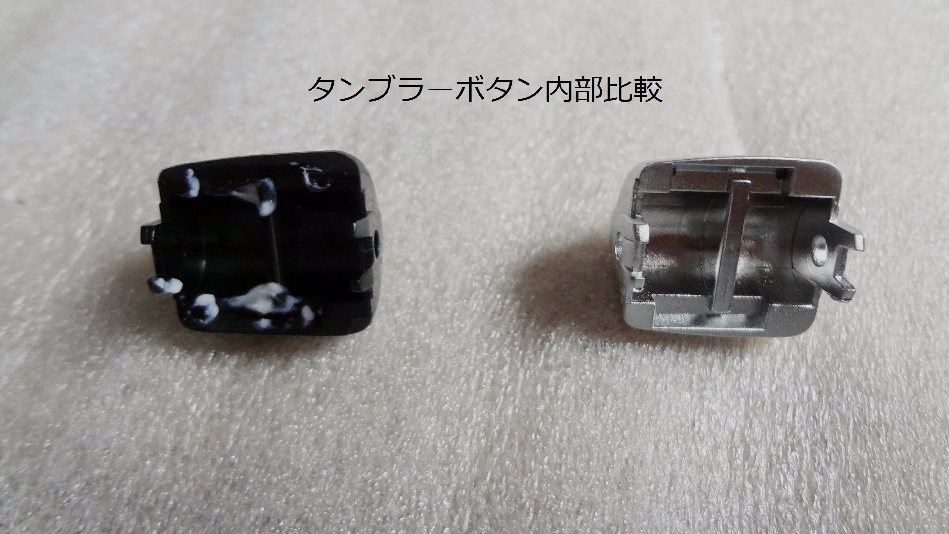 ・純正に付いていたゴムがない今回のボタンでは、タンブラーは操作上問題ありませんが、右のローラーはグリップ感が失われた感じなので、冬の換装時期は指が滑るような気配がしましたが、実際の所、何も違和感なく操作出来ています。