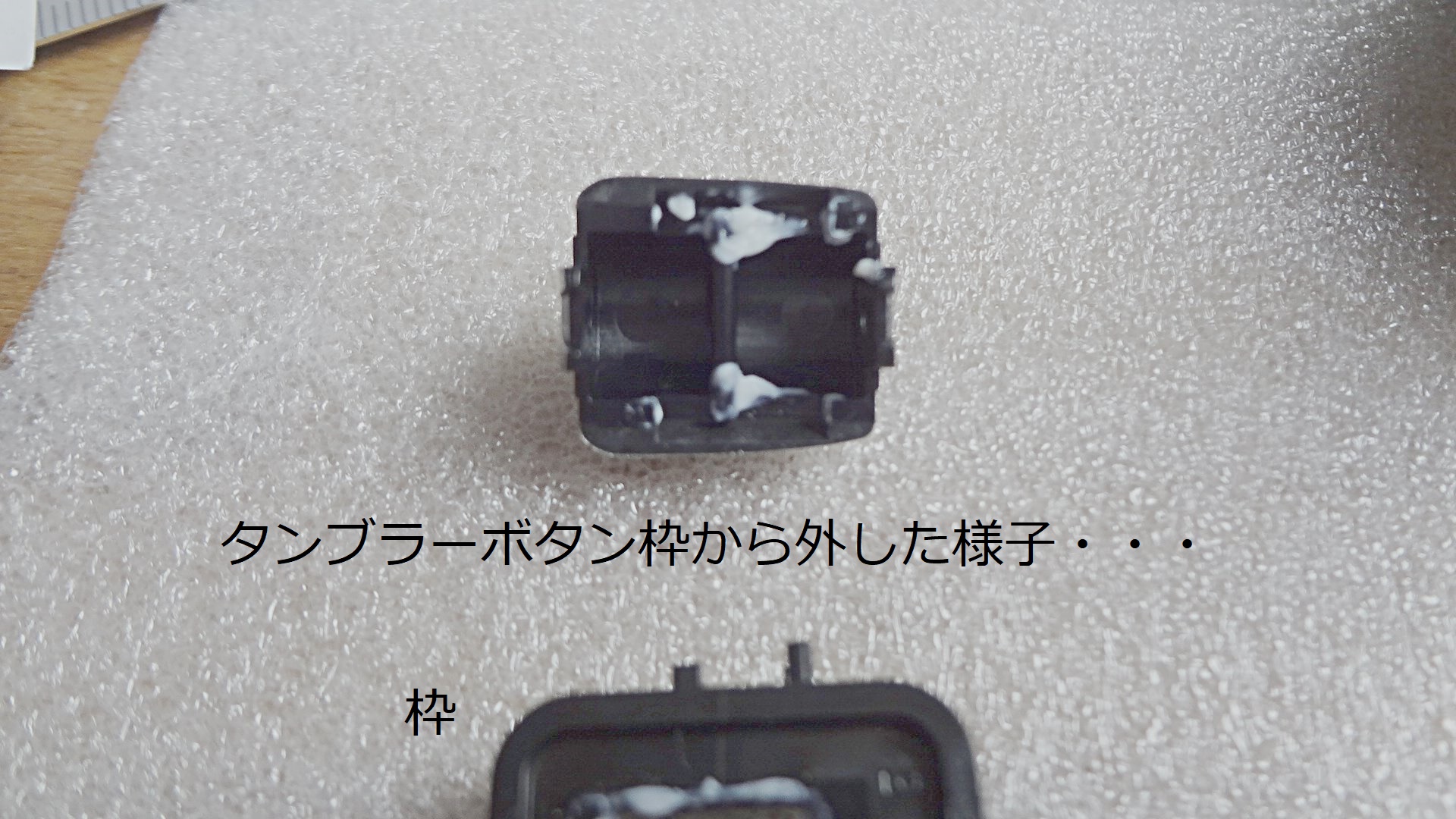➈旧ボタンに着いている白いグリスを取って枠側に付けておきました。
