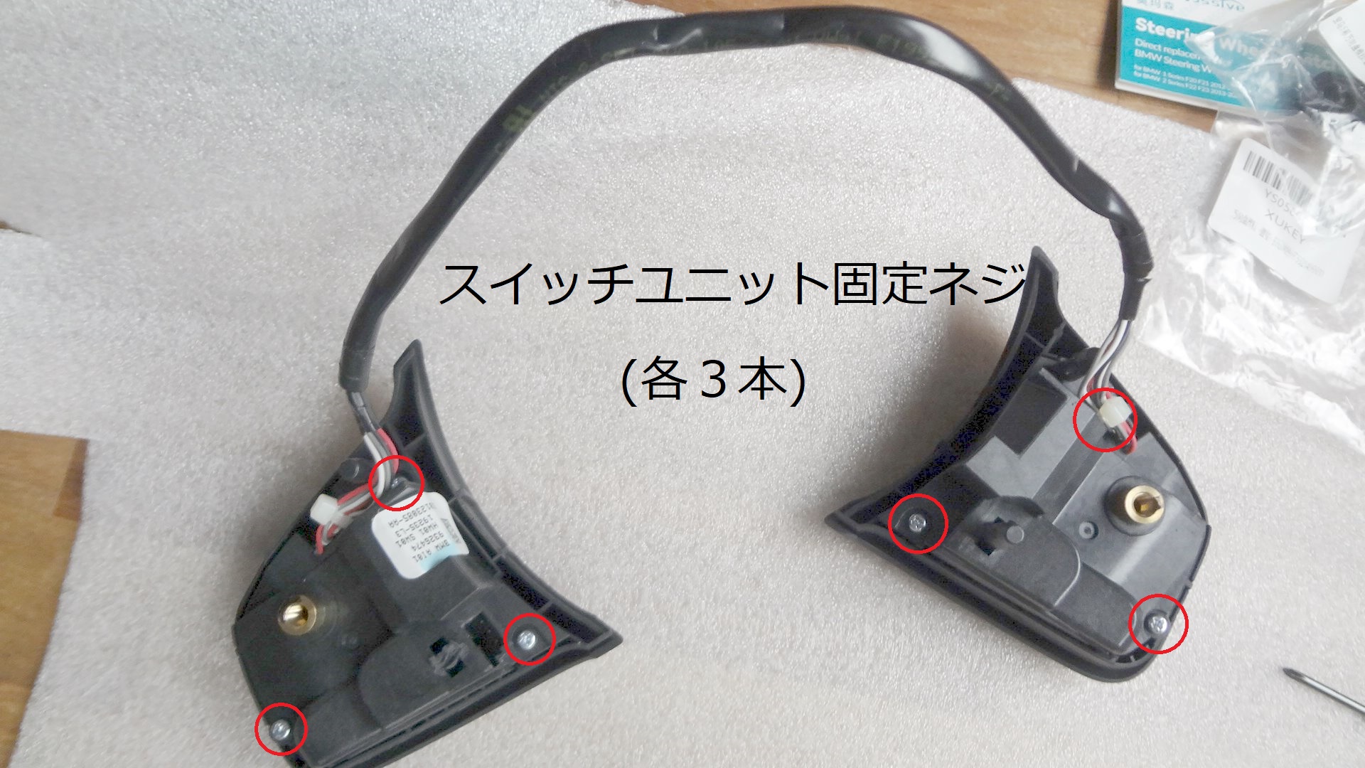 ③左右スイッチユニットを固定していたステアリング裏側のT20トルクスネジを締めます。